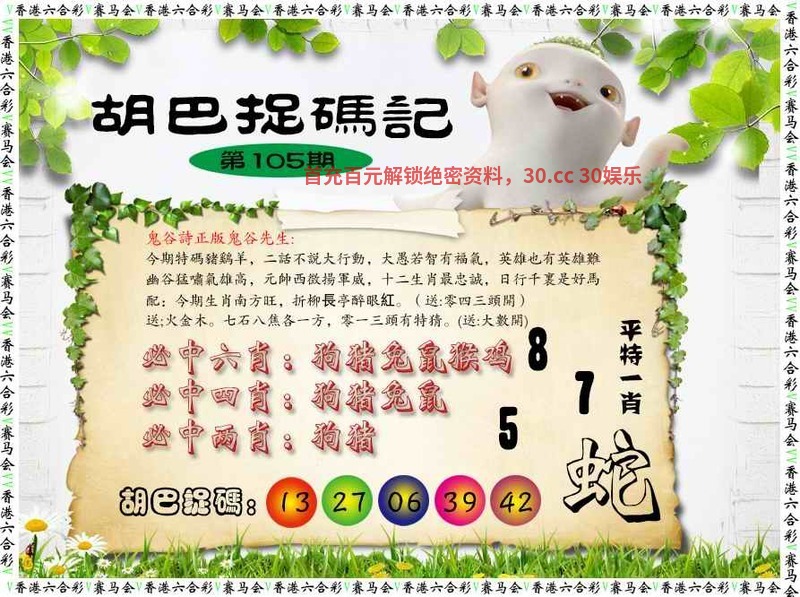 106期:必中单双【单单】开:猪43准